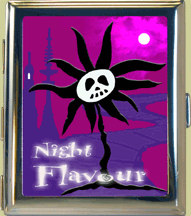 Night Flavour Maße 81 x 95 x 15mm Gewicht 84g Material glänzend polierter Stahl Rückseite fein zieseliert Ausstattung: 2 Gummibänder für 18 Zigaretten (85mm) Preis 14,- Euro